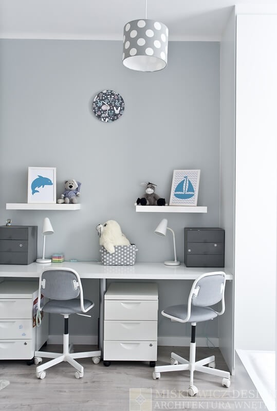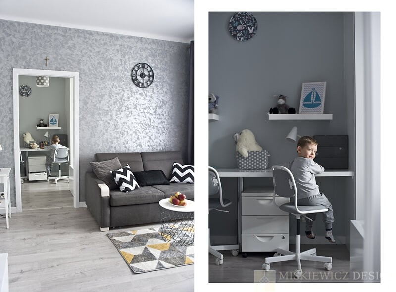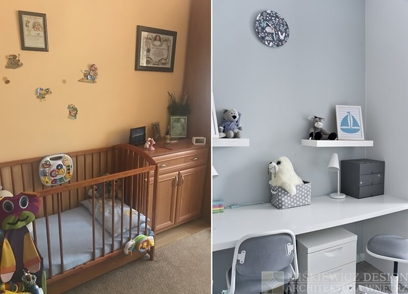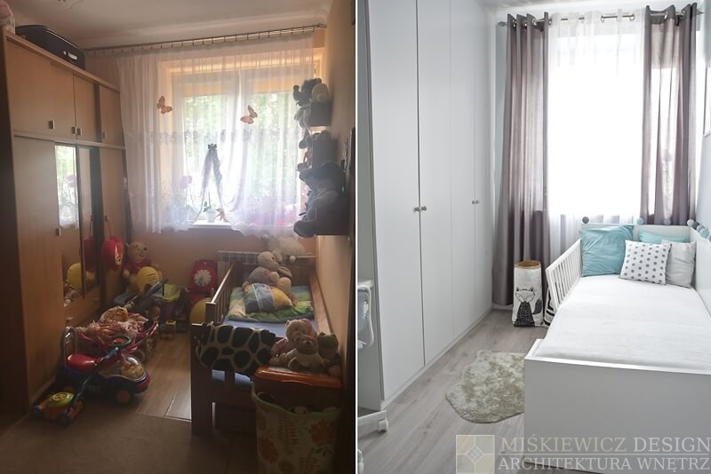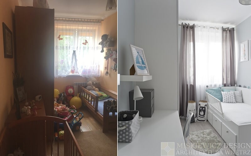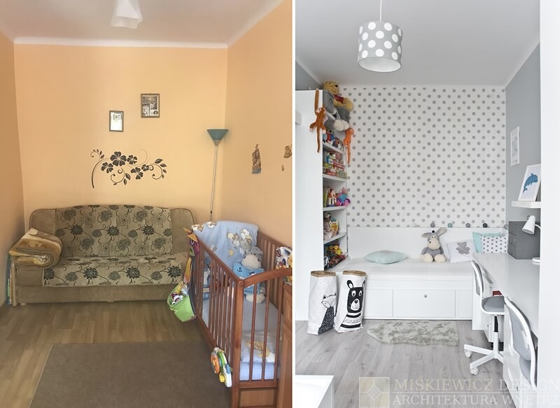 Pokój dziecięcy został zmieniony w stylu skandynawskim. Głównym kolorem jest biały, jeden z dwóch dominujących kolorów w całym mieszkaniu.