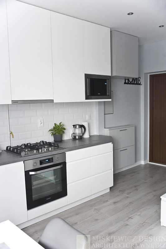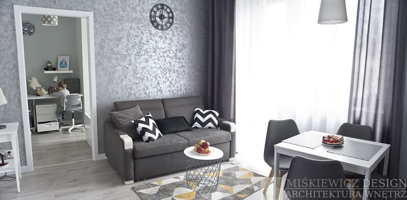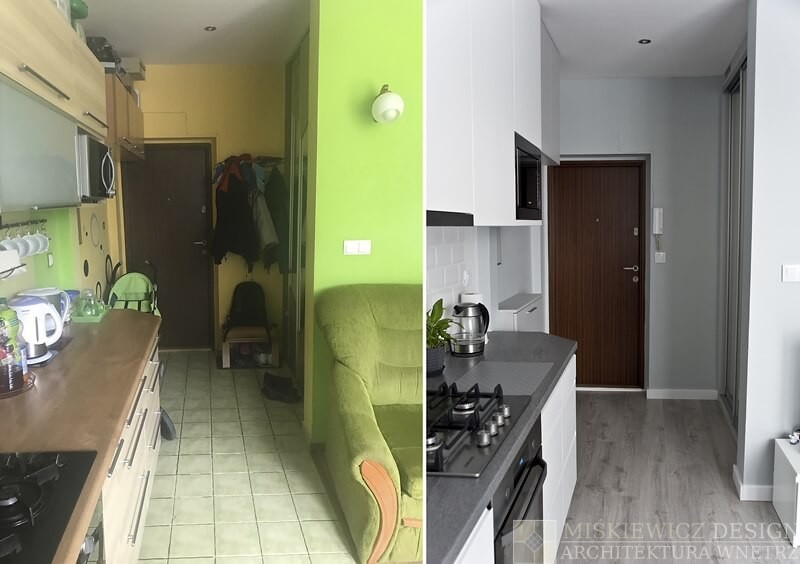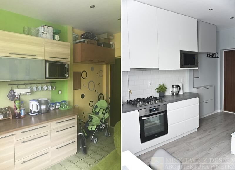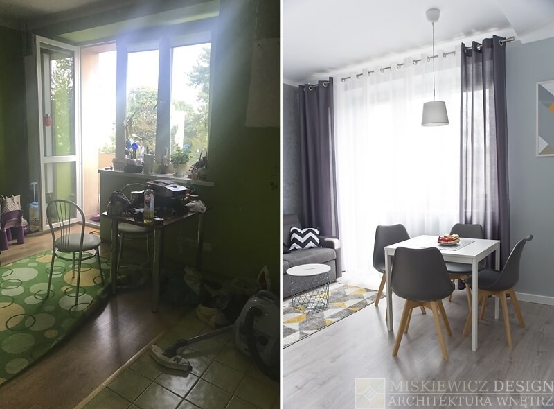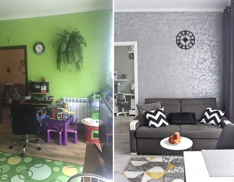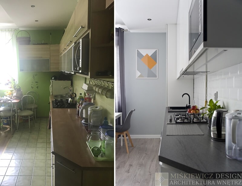 Nowa aranżacja wnętrza nie musi kosztować fortuny. Właściciele małego mieszkania na warszawskim Żoliborzu zgodzili się na zmianę stylu i lepsze rozplanowanie wnętrza. Nowy projekt wnętrz, zmiana stylu i kolorystyki spowodowała wizualne powiększenie mieszkania. Największy efekt uzyskaliśmy zmieniając kolorystykę na paletę szarości i zastępując intensywną zieleń bielą. Dzięki metamorfozie Mieszkanie od razu stało się wizualnie jaśniejsze i otrzymaliśmy efekt większego wnętrza niż jest w rzeczywistości.