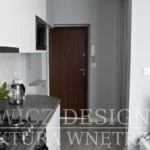 Zgodnie z projektem Podłoga została wymieniona na panele drewniane z delikatnym odcieniem szarości tak aby pasowały do całej kolorystyki wnętrza.