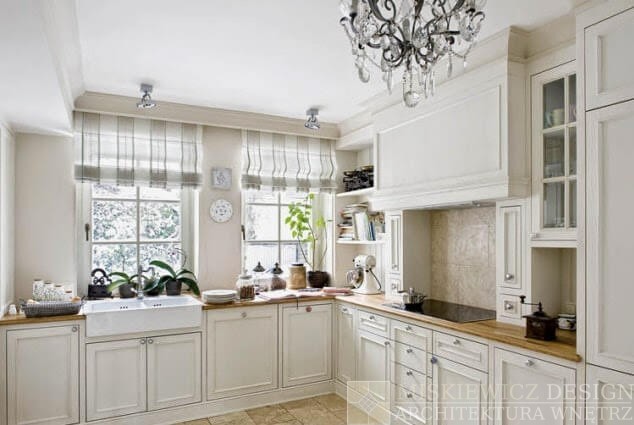 Wspaniale jest jeśli okna we wnętrzu są wysokie, drewniane z dzielącymi je szprosami naturalne lub pomalowane na ten sam jasny kolor, który dominuje we wnętrzu. Całości dopełnią zwiewne, jasne, gładkie zasłony z naturalnego materiału (len, bawełna)