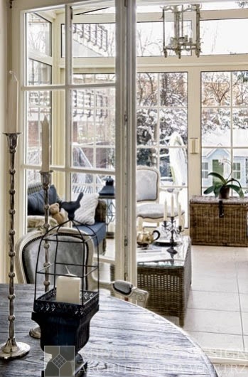 Nie mogłam nie zakochać się w tym widocznym na zdjęciach wnętrzu i tym projekcie. Cieszę się, że udało mi się je upolować. Jest całkowicie „moje”. Pod względem kolorów, stylu, lekkości, szykowności.. Monochromatyczność nigdy się nie znudzi, a kolor owszem. Dlatego kocham takie wnętrza. Prosty, przetarty stół, a nad nim piękny żyrandol, obok lustro w starej ramie i krzesła „ludwiczki”.. Połączenia, kontrasty, który tworzą piękną całość.. i ten taras za oknem, który kusi, oj kusi. Chciałoby się tam być. Już, natychmiast. Poproszę….